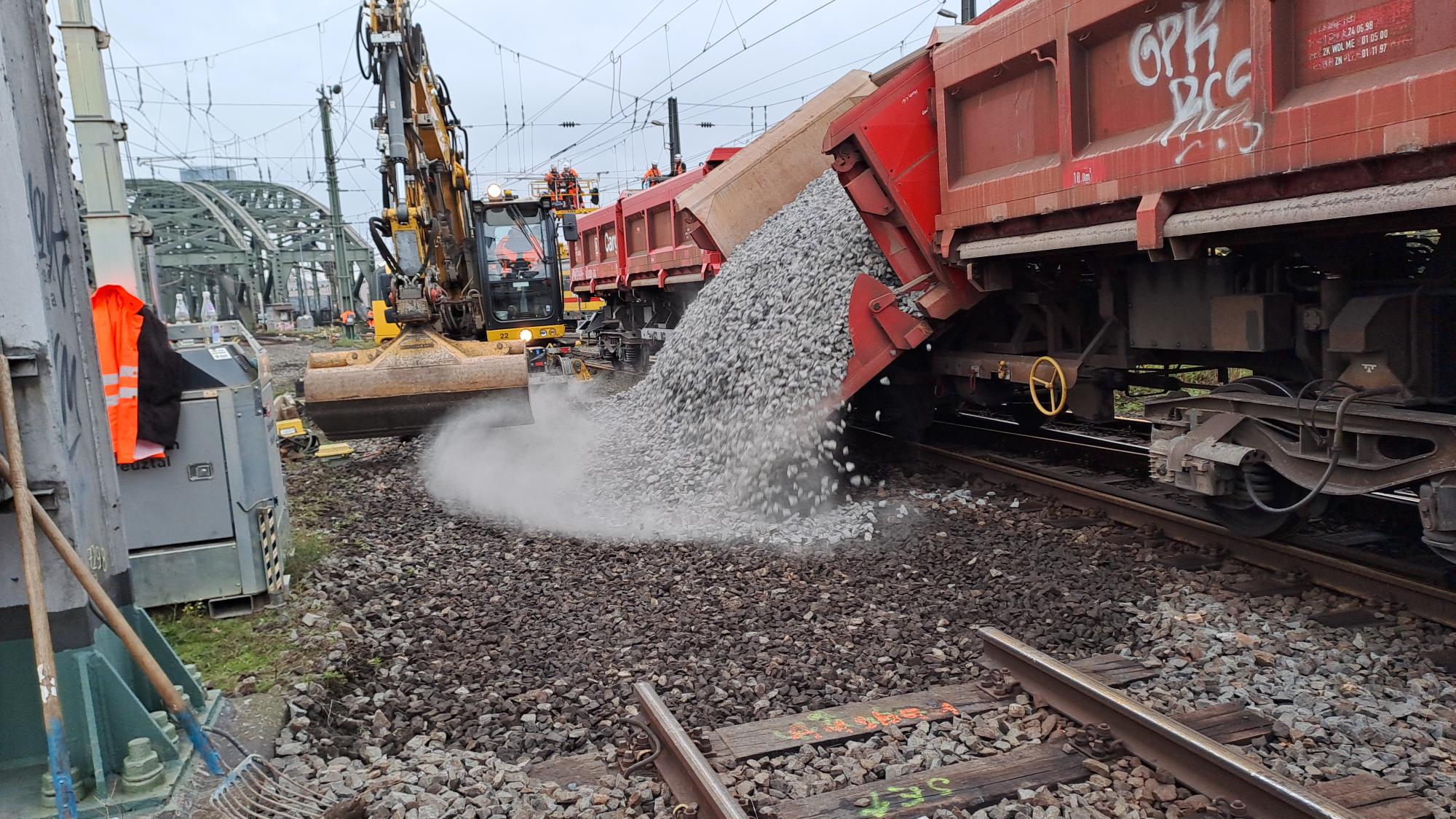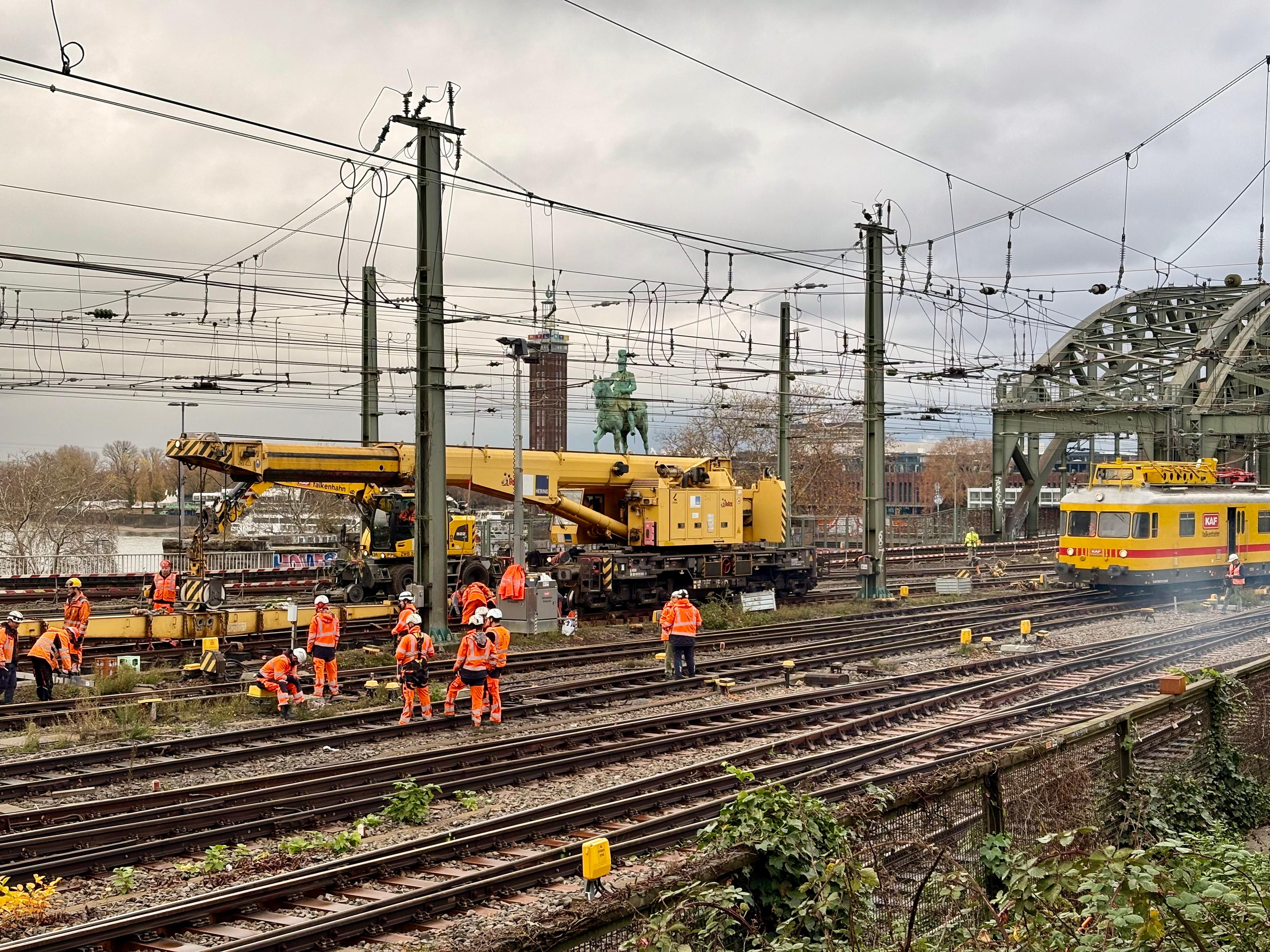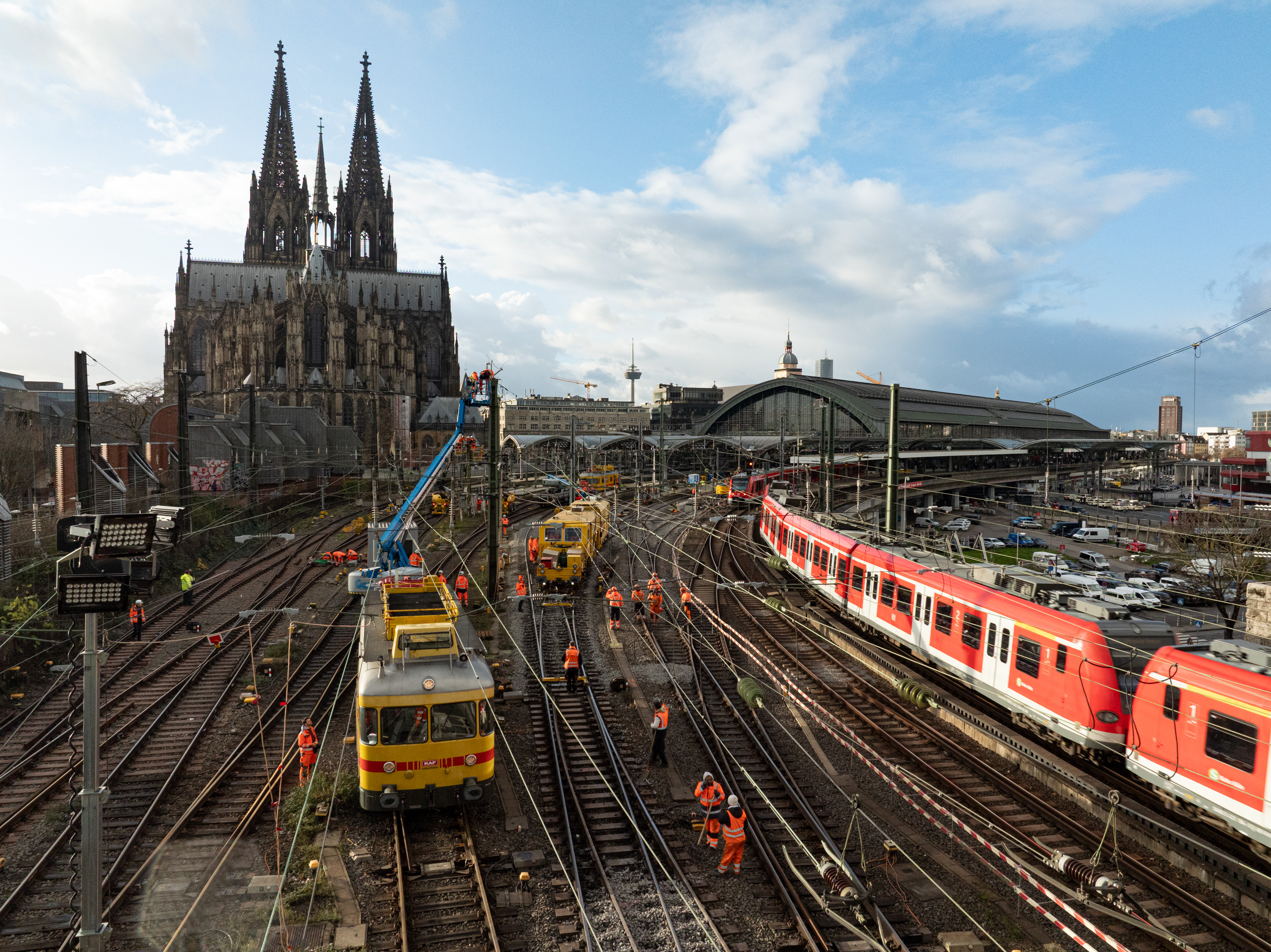 Außerdem haben wir die Sperrpause genutzt, um zusätzlich bestehende Weichen instandzuhalten. Darüber hinaus haben wir die Oberleitungsanlage in Richtung Hohenzollernbrücke erneuert und dort Schienen ausgewechselt.