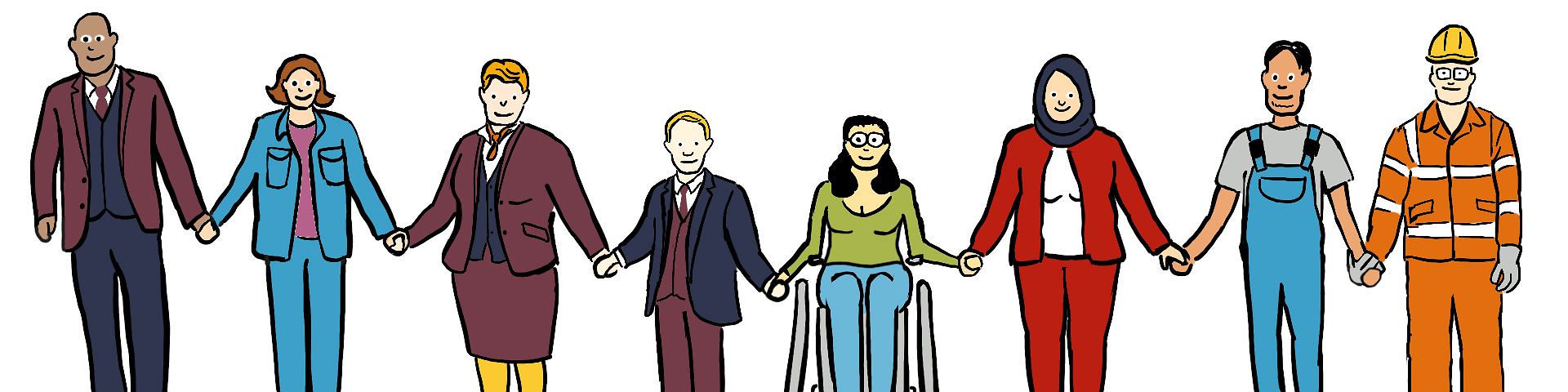 Hier arbeiten viele unter·schied·liche Menschen.