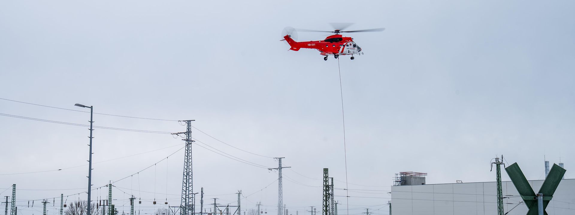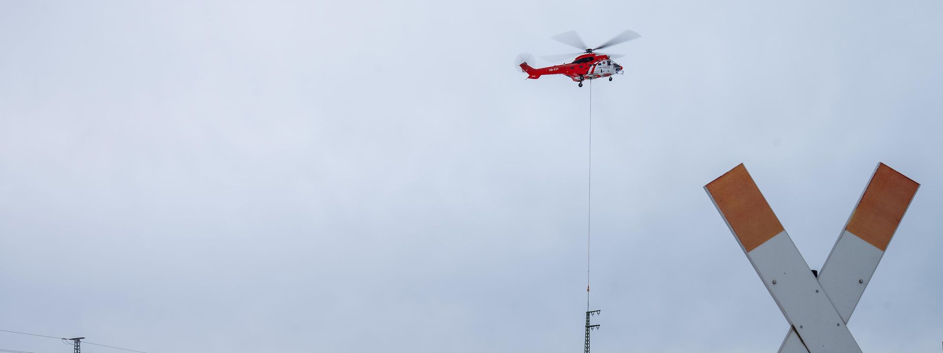 Artikel: Luftmanöver in Cottbus: Helikopter setzt am 12. Januar Oberleitungsmasten am Hauptbahnhof