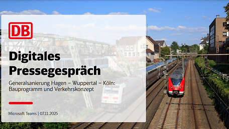 Der Countdown läuft: In knapp drei Monaten beginnt die DB InfraGO mit der Generalsanierung der Bahnstrecke zwischen Hagen und Köln. In der Zeit vom 6. Februar bis 10. Juli 2026 bündeln die Bauteams entlang der rund 65 Kilometer langen Strecke ein riesiges Bauvolumen und arbeiten zeitgleich an Gleisen, Weichen, Oberleitung, Schallschutzwänden und Bahnhöfen. Damit Fahrgäste im Nah- und Fernverkehr während der Bauzeit weiterhin mobil bleiben, hat die DB InfraGO in Abstimmung mit den Aufgabenträgern für den Schienenpersonennahverkehr go.Rheinland und VRR sowie den betroffenen Eisenbahnverkehrsunternehmen National Express, eurobahn, RheinRuhrBahn, Regiobahn und DB Regio ein leistungsstarkes Ersatzkonzept erarbeitet.