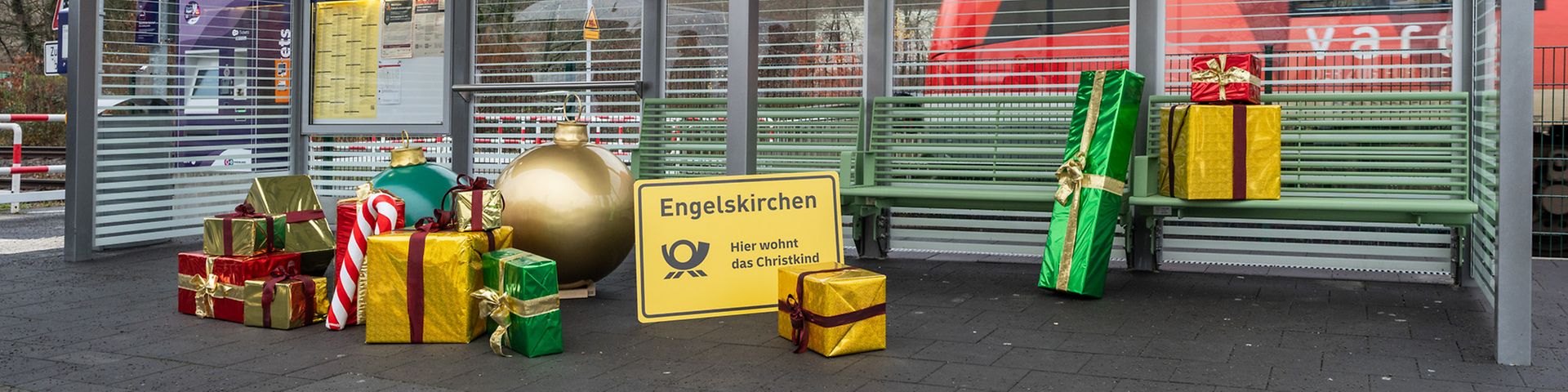 Dank der Modernisierungsmaßnahmen ist der Zukunftsbahnhof Engelskirchen viel attraktiver geworden. Bei der Ankunft am Bahnhof wird die besondere Verbindung zur Weihnachtspostfiliale sichtbar: Ein kleiner Engel aus dem örtlichen Engelmuseum schmückt das neue, große Wetterschutzhaus am Vorplatz und begrüßt alle Reisenden. Ein weiteres Schild informiert über die Weihnachtspostfiliale des Christkinds – inklusive QR-Code zur passenden DHL-Website. Am Bahnsteig gibt es eine weitere Verbesserung für Bahnreisende: Fahrgäste haben nun die Möglichkeit, in einem neuen Wetterschutzhaus auf den Zug zu warten. In beiden Wetterschutzhäusern gibt es moderne, angenehme Sitzmöglichkeiten.