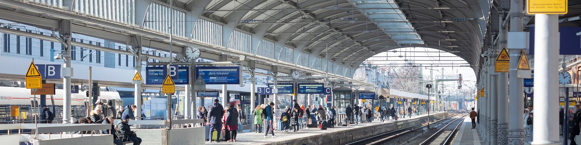 In dieser Woche beginnt der XXL-Austausch. Zunächst deinstallieren die Techniker:innen die alten LCD-Displays, die bereits seit mehr als 15 Jahren im Einsatz sind. Die neuen Anzeigen werden dann teilweise an anderen Standorten entlang des Bahnsteigs neu installiert. Dabei nutzen die Techniker:innen die bestehenden Leitungen, so dass eine zügige Installation der neuen Monitore möglich ist. Nach der Erneuerung an Gleis 1 gehen die Arbeiten schrittweise an den anderen Bahnsteigen weiter. Auch in der Unterführung im Norden Richtung U-Bahn montieren die Fachleute neue Anzeigen, so dass Reisende schon auf dem Weg zum Bahnsteig über ihre abfahrenden Züge informiert werden.