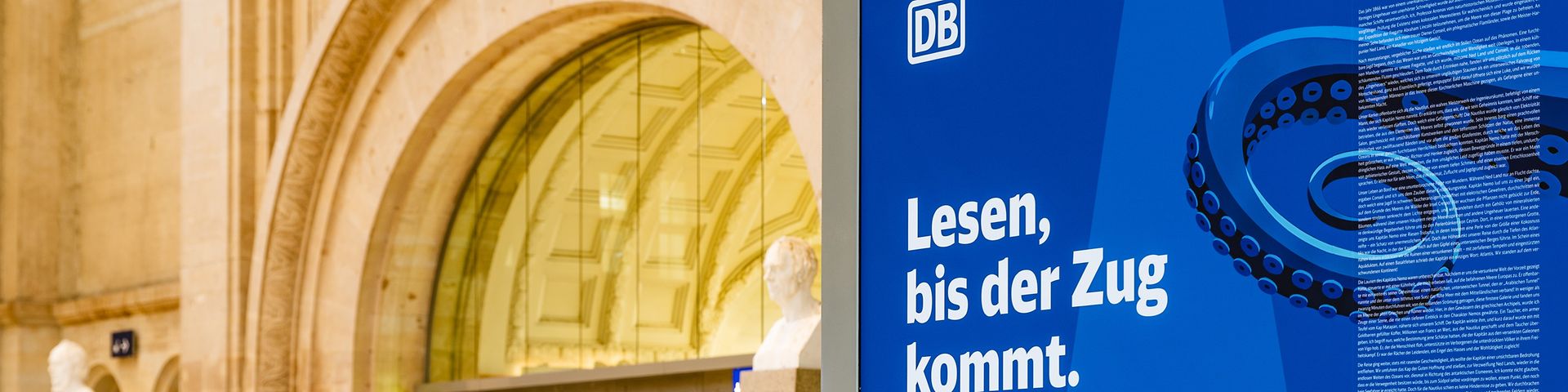 Die DB hat an leerstehenden Schaufenstern oder Bahnhofsflächen KI-gekürzte Versionen dieser Werke in fünf, zehn, 20 oder 30 Minuten plakatiert. Je nach Zeitfenster können Reisende und Bahnhofsbesuchende direkt in die Texte eintauchen.