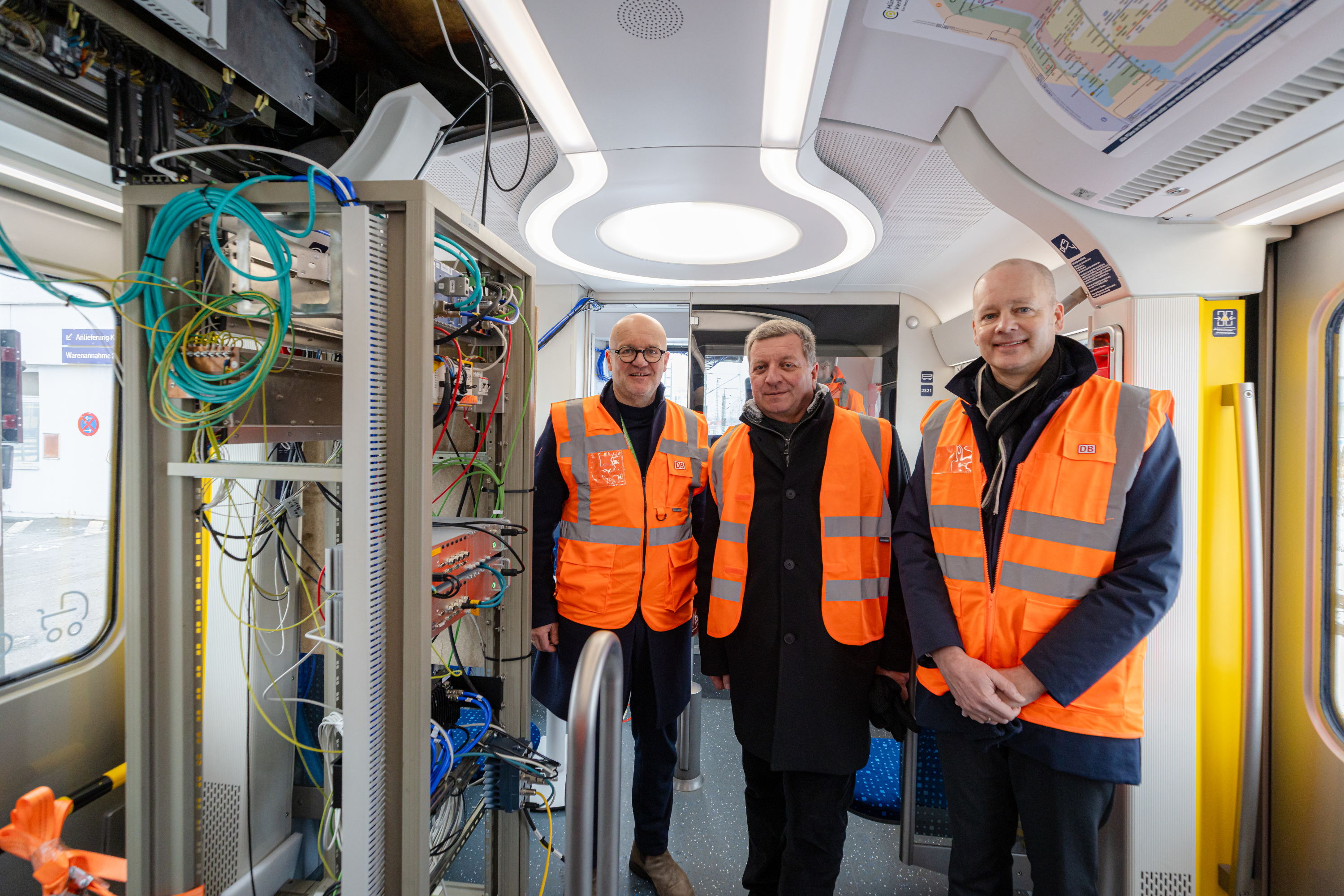Der Testbetrieb in Steinhausen setzt mit einer umfassenden 5G-basierten Steuerung aus größerer Distanz jetzt aber neue Maßstäbe in Deutschland. Das Fahrzeug lässt sich aus der Ferne nicht nur bewegen, die Mitarbeitenden können auch Türen schließen, die Beleuchtung einschalten oder Warnsignale abgeben. Große Displays zeigen am originalgetreuen Steuerpult Livebilder der Fahrt, während der Zug draußen komplett ferngesteuert fährt. Zusätzlich ist im Rahmen des Testbetriebs eine ortsunabhängige Steuerung per Tablet möglich.