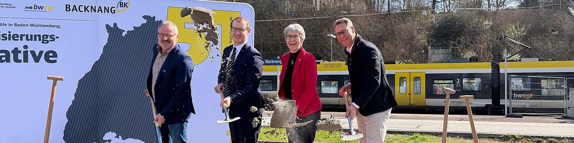 Die DB InfraGO, das Land Baden-Württemberg und die Stadt Backnang starten offiziell die umfassende Erneuerung des Bahnhofs Backnang. Mit dem symbolischen Spatenstich beginnen die Arbeiten im Rahmen der landesweiten Modernisierungsoffensive „Bahnhof der Zukunft“. In die Modernisierung werden rund 10 Millionen Euro investiert. Bahn und Bund übernehmen davon etwa 5,8 Millionen Euro, das Land stellt rund 1,9 Millionen Euro bereit und die Stadt Backnang beteiligt sich mit etwa 2,3 Millionen Euro. Zudem übernimmt das Land voraussichtlich rund 500.000 Euro Wirtschaftlichkeitsausgleich für den Betrieb der Station durch die DB in den kommenden 20 Jahren.