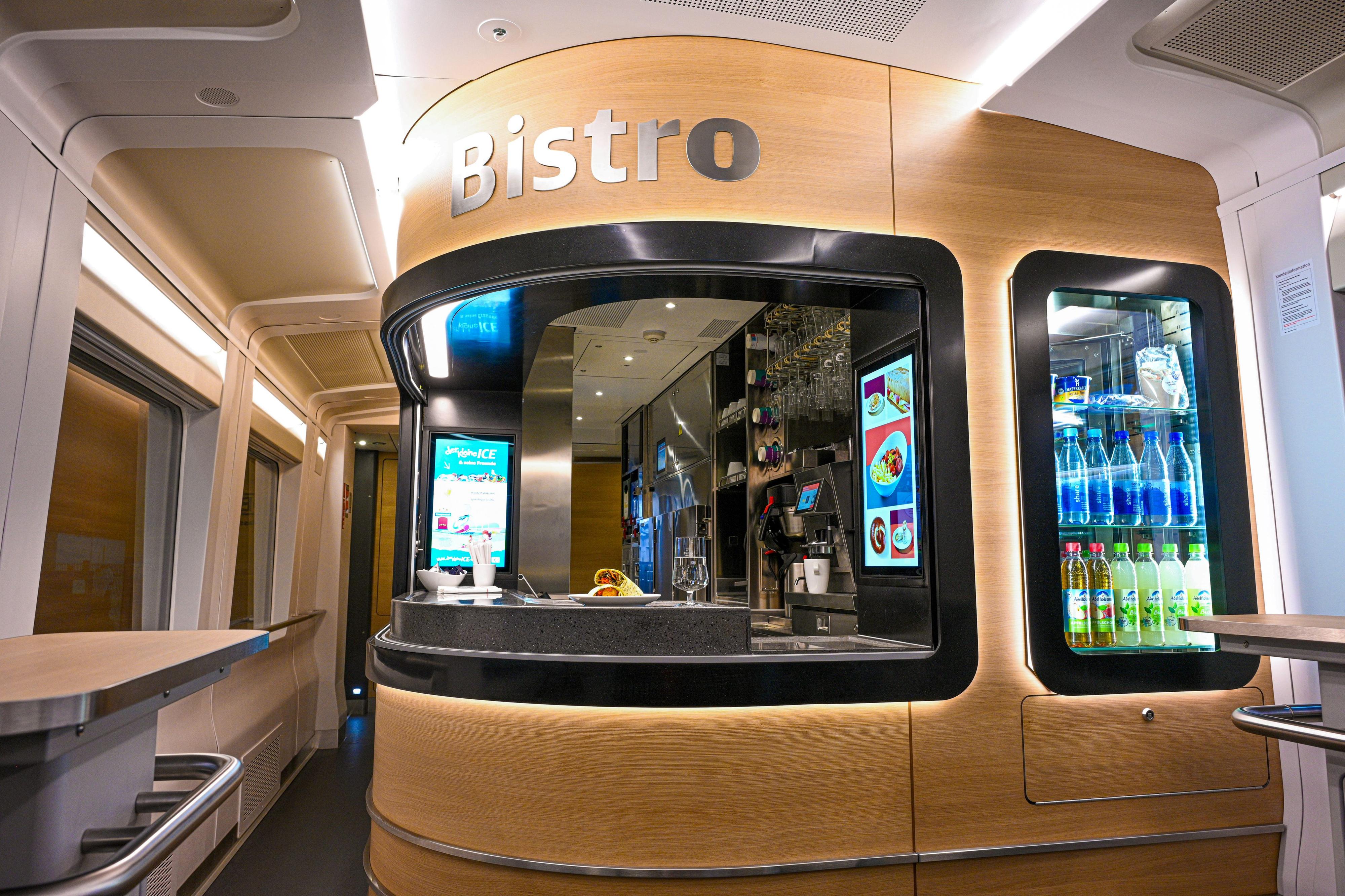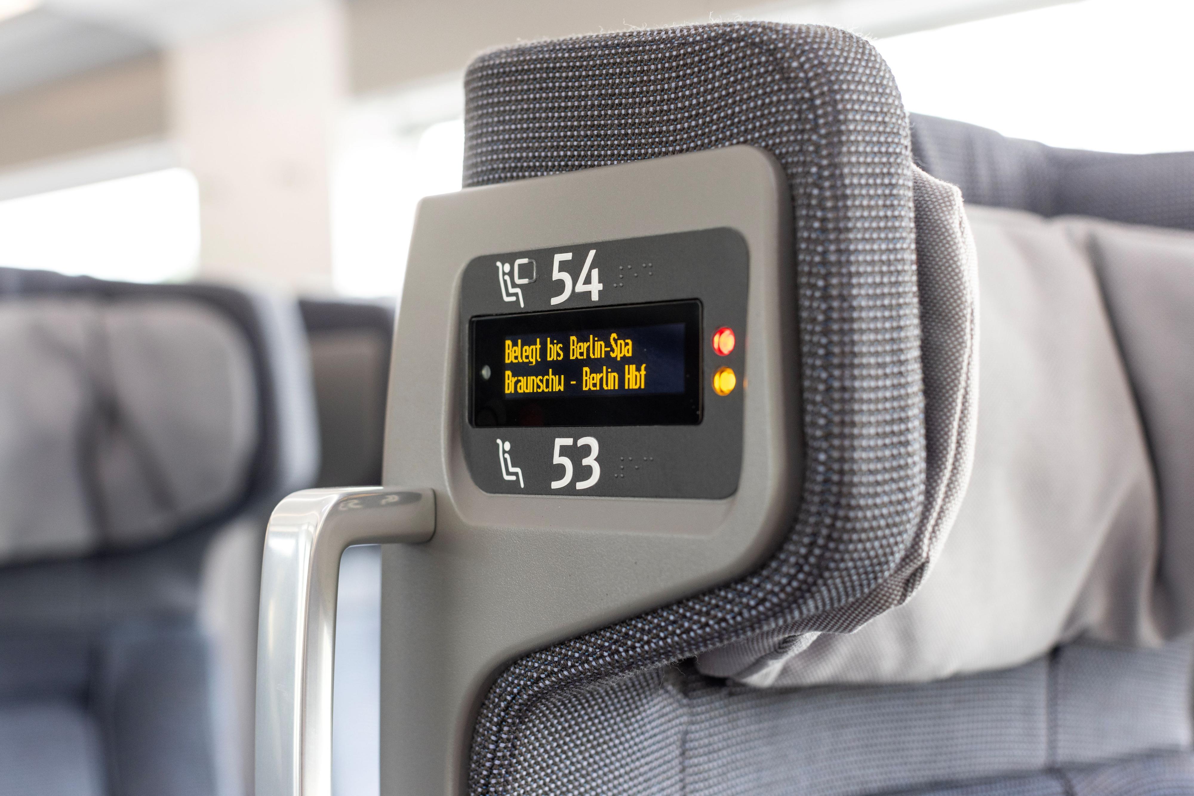 - Das neue Innenraumdesign mit neuen Farben und Materialien sorgt zusammen mit den kürzeren Wagen im ICE L für ein angenehmes, wohnliches Raumgefühl. Hinzu kommt eine tageszeitabhängige Lichtsteuerung.