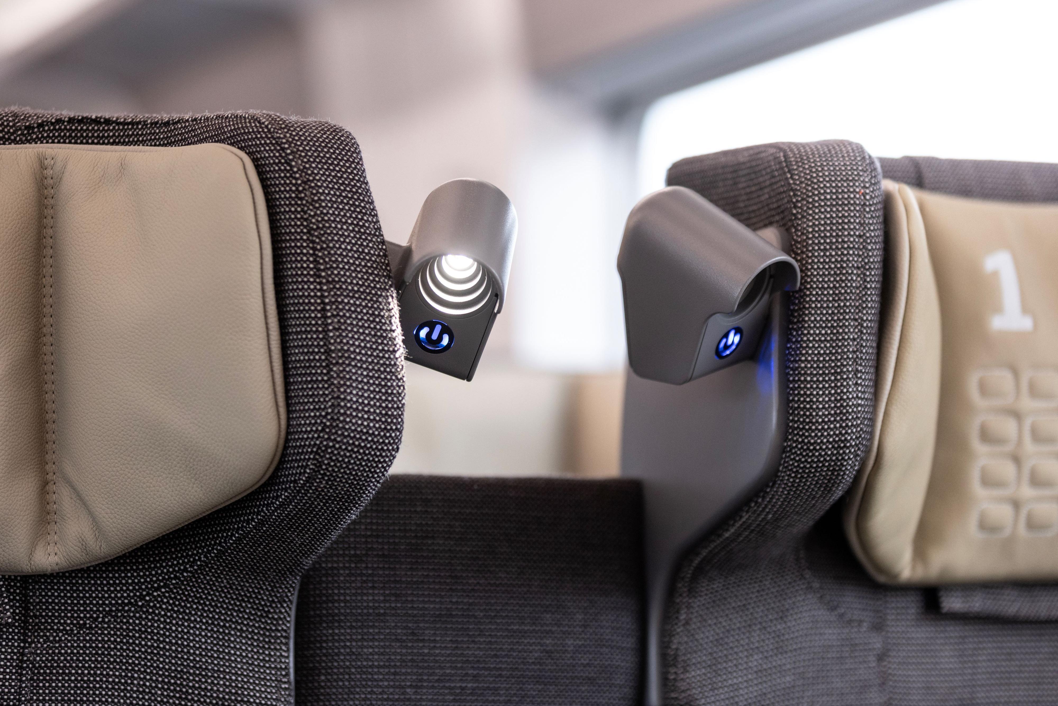 - Die 562 verbauten Sitze sind eine echte Neuentwicklung, bei der mehr als 1.600 Testpersonen involviert waren. Die Sitze verfügen an allen Plätzen über Steckdosen sowie bei den Reihensitzen über Klapptische und Tablethalter.