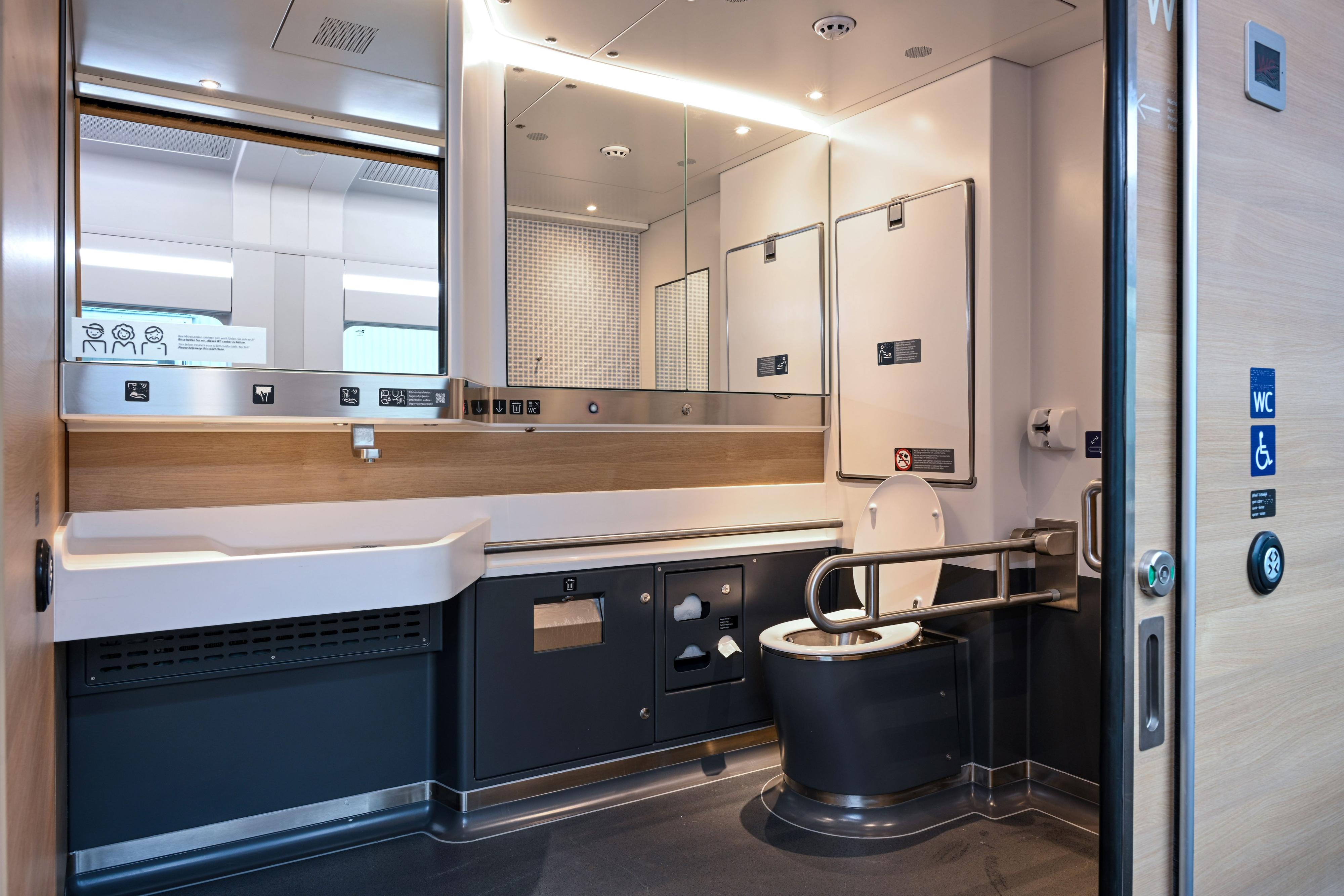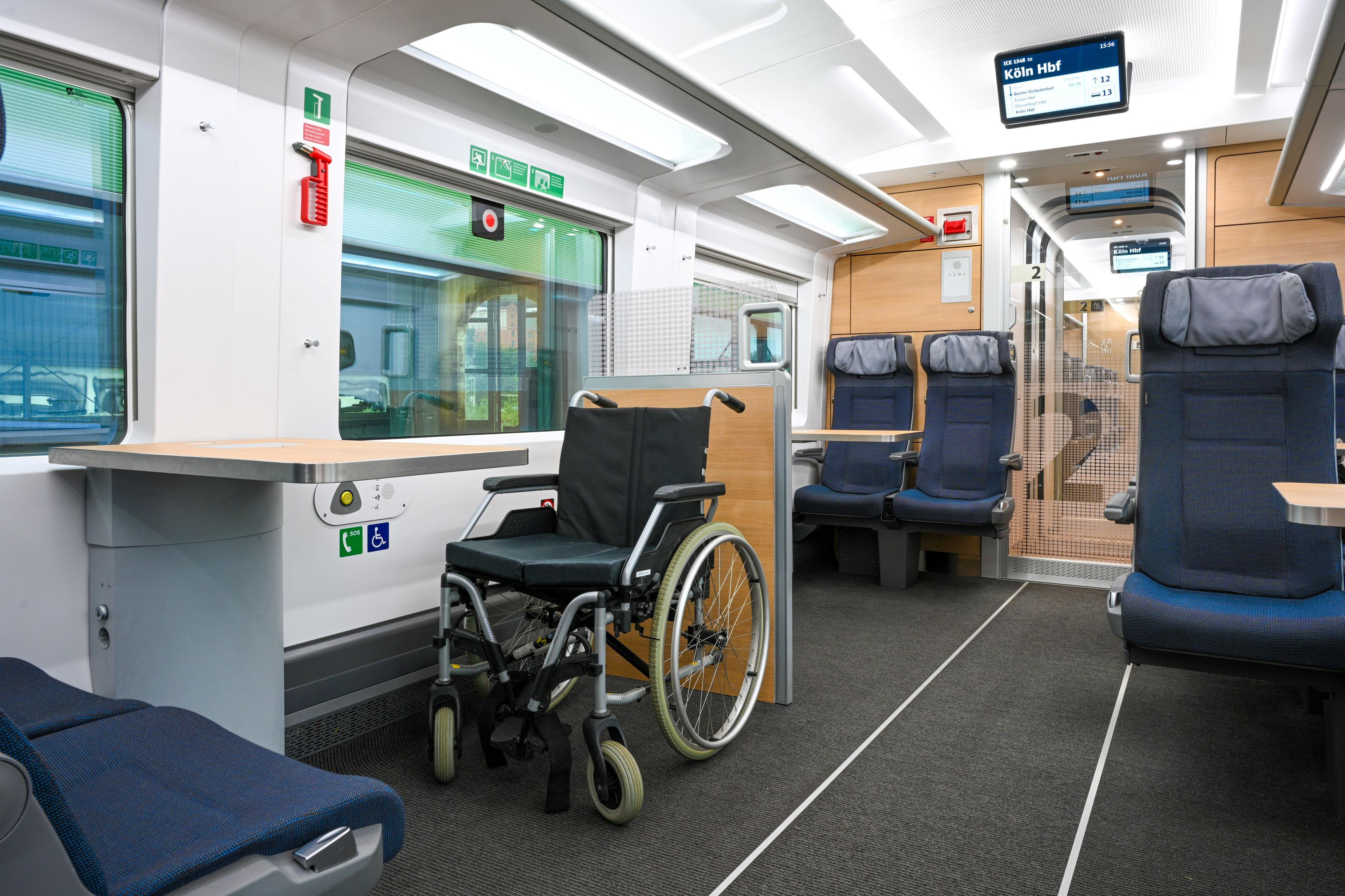 - Für Reisende im Rollstuhl bietet der ICE L zusätzlich zum stufenlosen Einstieg eine breitere Tür sowie elektrisch höhenverstellbare Tische an den Rollstuhlplätzen.
